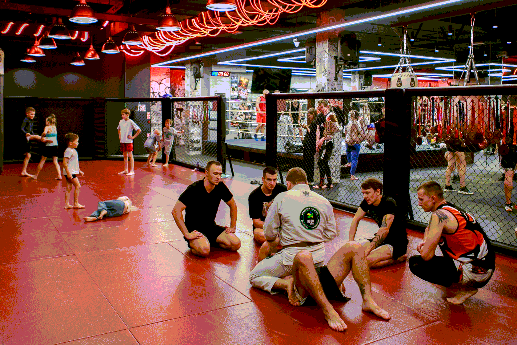 Потом — общая растяжка. Момент, когда на ковре были все: дети, взрослые, новички, «старички».
