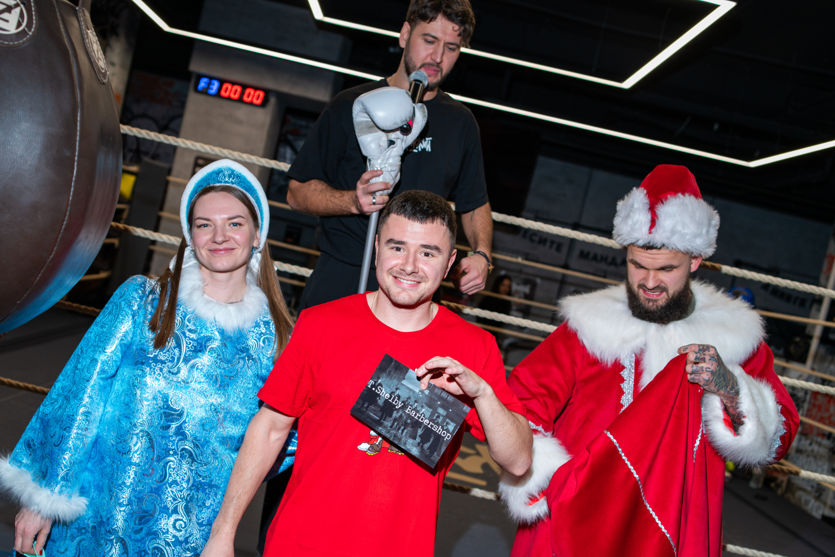 Зал гудел, кто-то открывал в себе новые силы, а кто-то просто наслаждался. В разгар вечера к нам заглянули Дед Мороз и Снегурочка. И, конечно, не обошлось без подарков!